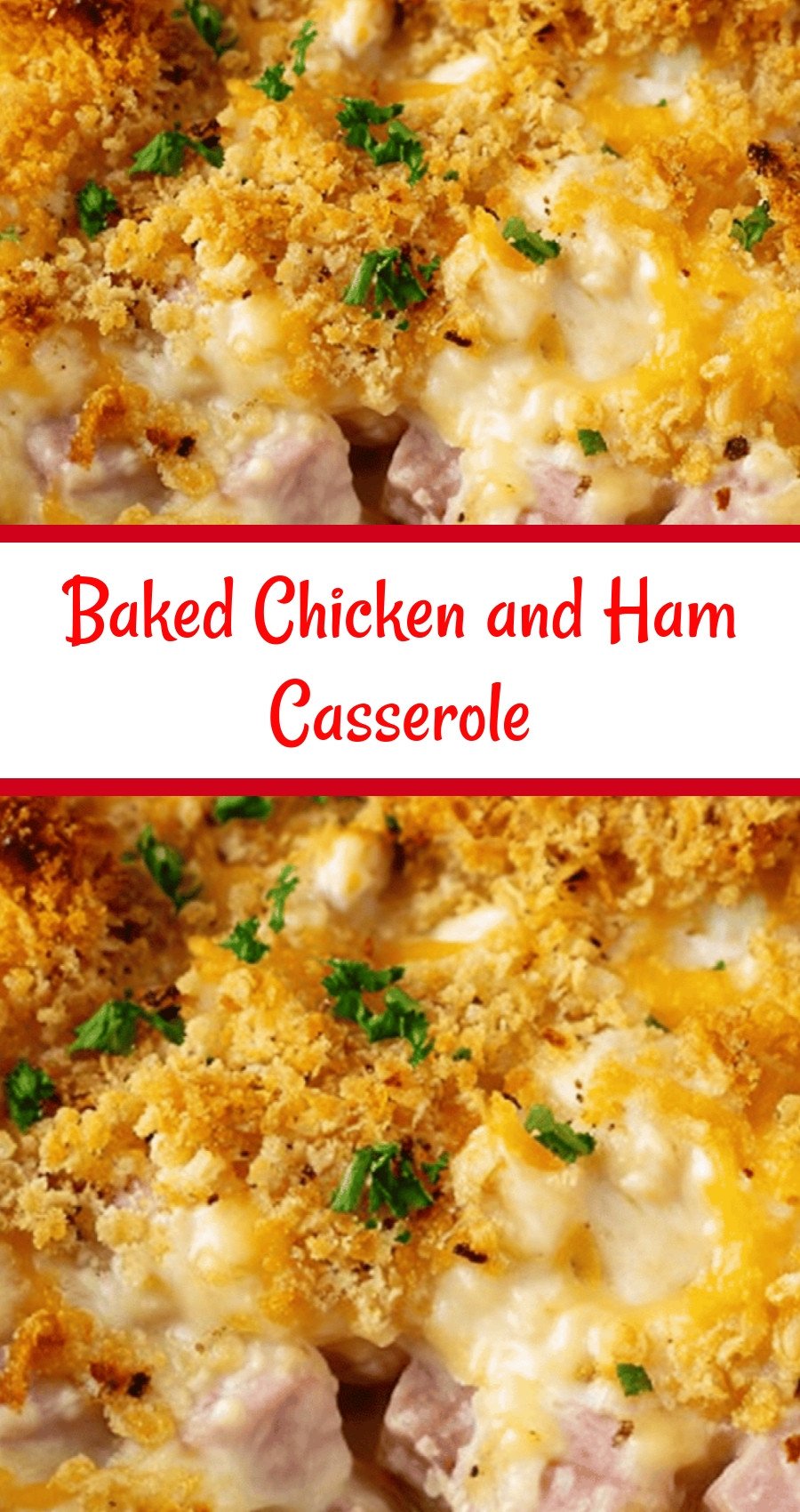 Creamy, cheesy baked casserole with chicken and ham. The ultimate comfort food! Easy to make ahead for a simple, satisfying family dinner.