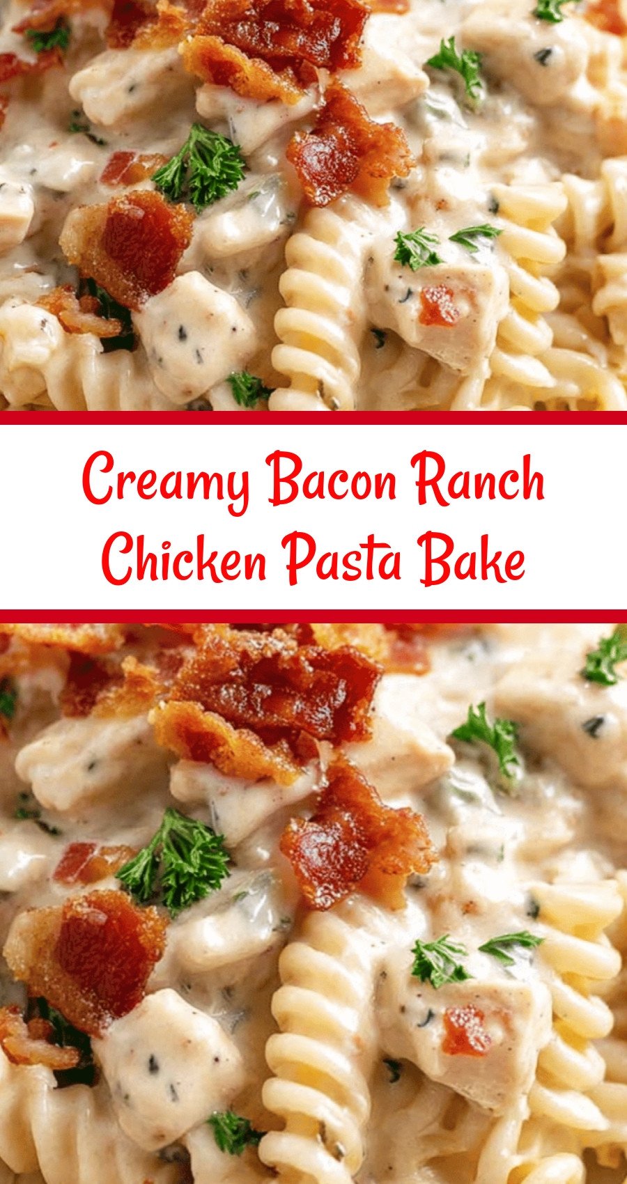 creamy chicken pasta bake, bacon ranch pasta, easy dinner recipe, family meals, one pan pasta