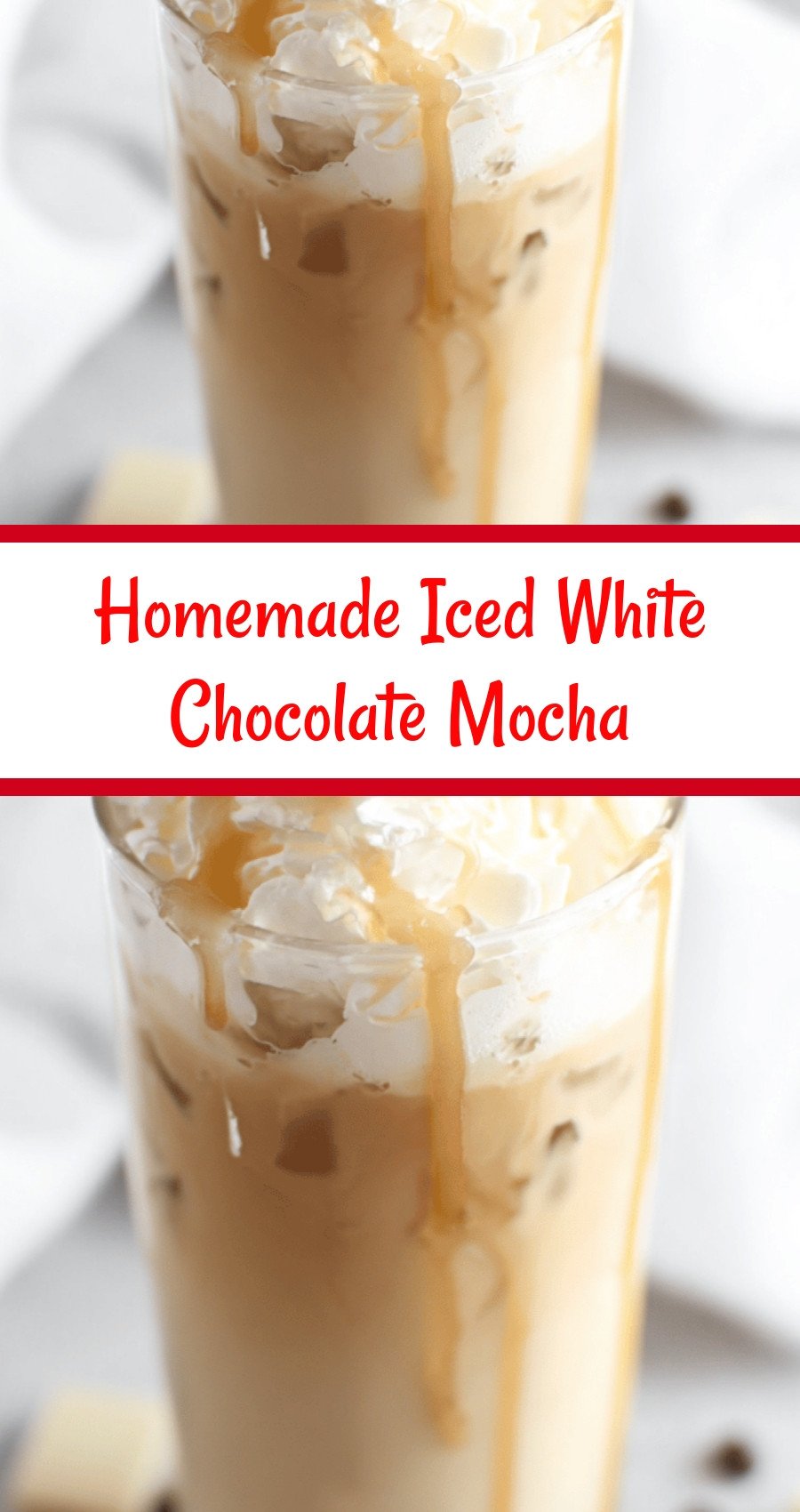 Skip the coffee shop! Learn how to make a rich & creamy Homemade Iced White Chocolate Mocha. This easy recipe is the perfect sweet coffee treat. iced white chocolate mocha, homemade coffee recipe, easy iced coffee, starbucks copycat, sweet coffee drinks