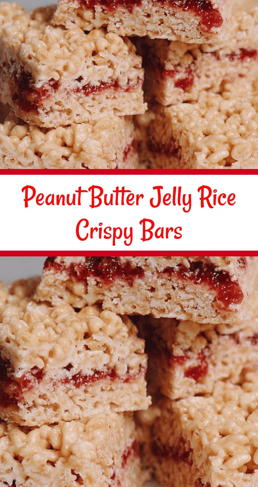 The ultimate mashup! Chewy rice crispy treats meet the classic PB&J flavor. An easy, no-bake dessert that’s perfect for snacks and lunchboxes. peanut butter jelly rice crispy bars, no bake dessert, easy kid friendly treats, rice krispie treats recipe, fun snack ideas