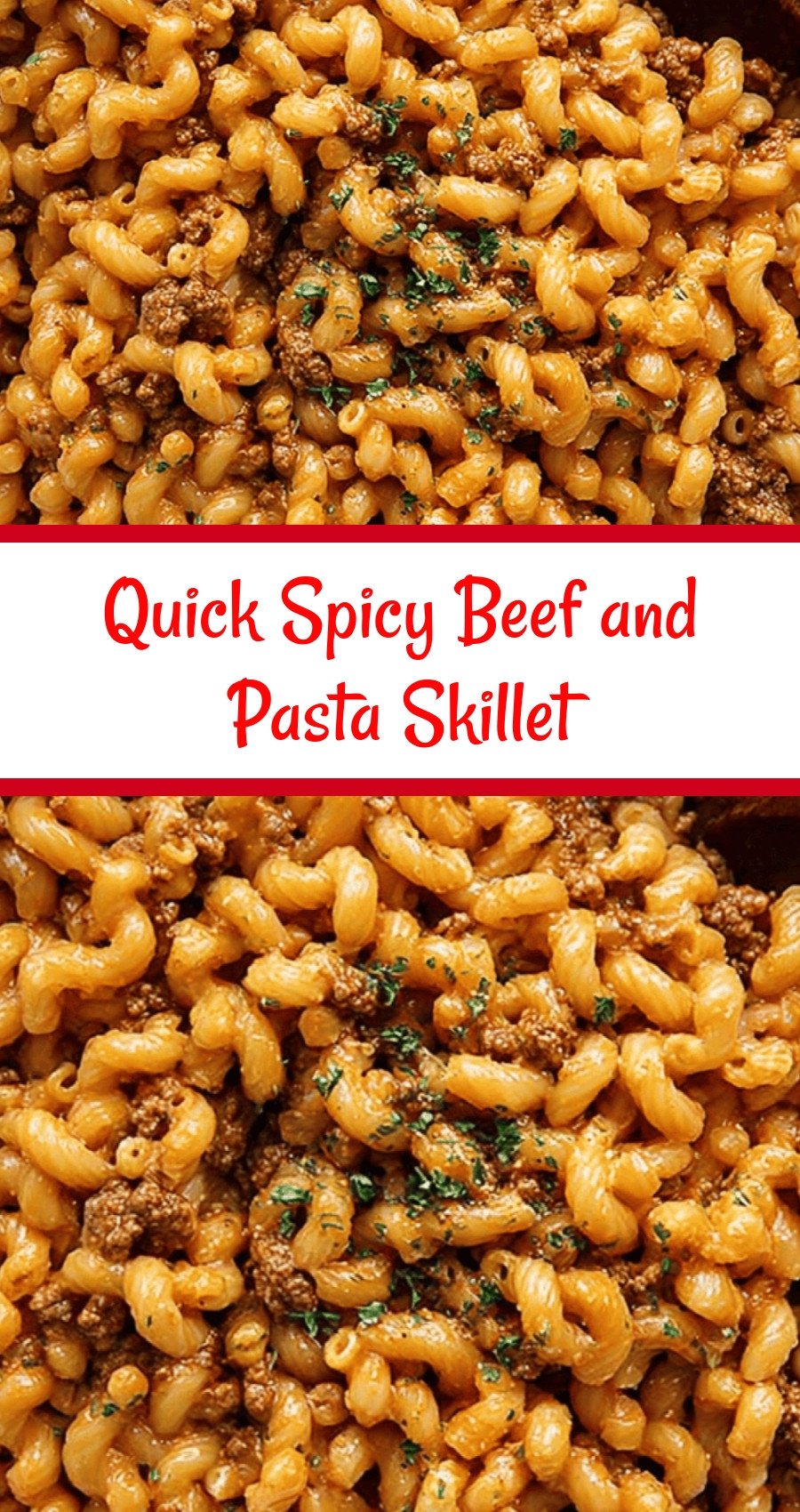 Spicy beef pasta, quick skillet dinner, easy family meals, 30 minute recipes, one pan pasta.