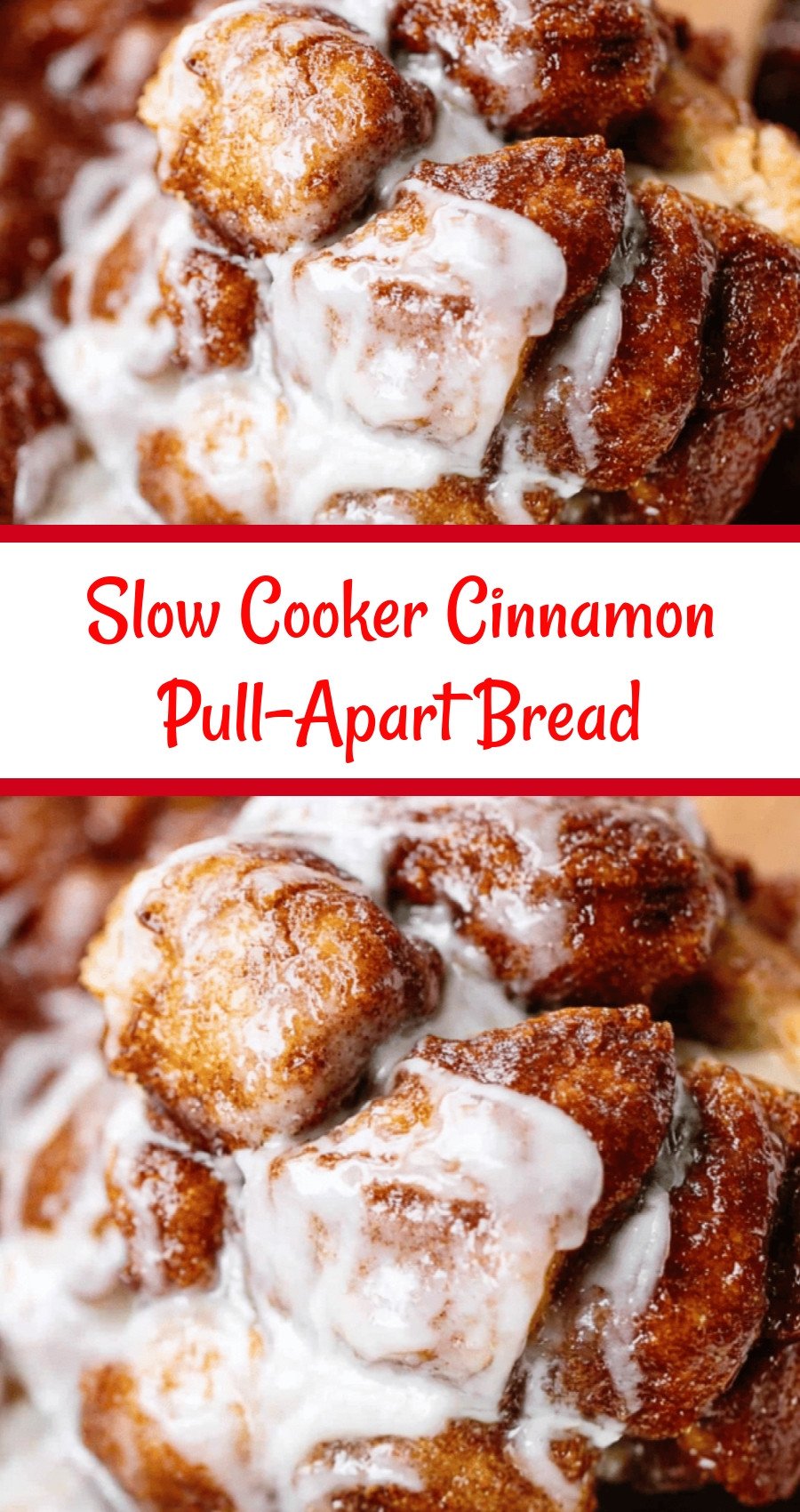 The easiest, most delicious cinnamon pull-apart bread! Made entirely in your slow cooker for a gooey, warm, and irresistible treat. Perfect for breakfast or dessert.