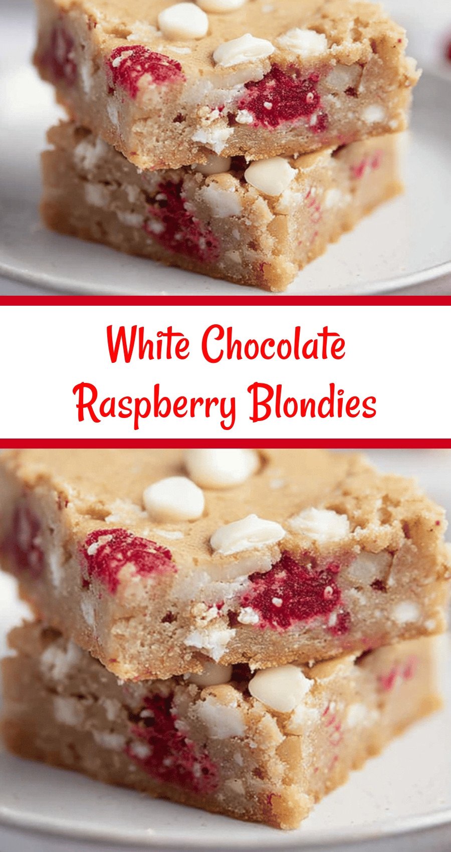 Easy white chocolate raspberry blondies recipe! A chewy, fruity dessert perfect for any occasion. Quick to make and always a crowd-pleaser.